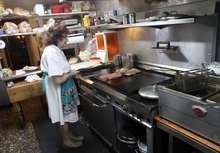 "I stay in the kitchen mainly," she said. "But I'll come out when it's slow or an old-timer comes in to say hello."