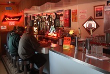 "There were no other businesses. It was just Slim Olson's and us and orchards all around," remembered Kitty Pappas, who still wears a white-collared waitress uniform reminiscent of the era. "All the truckers who came up this highway stopped in. We were open seven days a week, 24 hours a day."