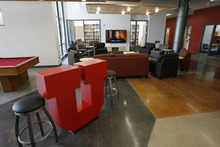 Divided by its third wing, the building's exterior space on the west provides a patio for games and socializing on one side and a stepped lecture/performance/you-name-it venue on the other. Room and board are more expensive than at the Fort Douglas residential halls, but every bed was filled the day after students began registering for Honors housing.