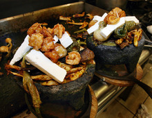 The massive entrée, served at Rancho Market, gets its name for the hot lava rock in which it's served. It starts with a gooey fondue of homemade green salsa, chunks of Monterey Jack cheese and fried strips of prickly-pear cactus, called nopalitos. Well-cooked pieces of chicken and beef strips are placed on top, as are roasted green onions, fried whole jalapeños and strips of fresh Mexican cheese. The mound is then garnished with a few deep-fried shrimp. Served with tortillas and salsa, the dish arrives at the table sizzling and bubbling. Rancho Market, 4071 W. 5416 South, Kearns; 801-966-2400.