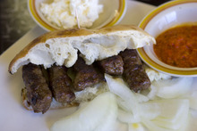 All the food at Cafe on Mainis affordable, but for something unique try the cevapi, considered the national food of Bosnia. Finger-sized links usually made from ground beef or lamb are grilled and served inside a thick, chewy pita bread known as lepinga. Raw white onions, a mild red pepper spread called avjar and either sour cream or a creamy feta-like cheese complete this hearty sausage sandwich.