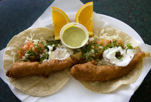 At Mariscos Ensenada restaurant, Tejano music thumps on the stereo, Mexican soap operas play on a flat-screen TV and fresh fish is the house specialty. The pescado tacos are generous finger-size strips of deep-fried mahi mahi, topped with lettuce, tomato and a slightly, spicy green chile sauce. One taco is only $2.25; For variety, try a shrimp taco, $2.99 each.