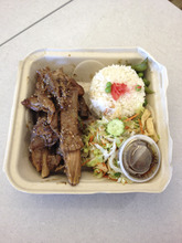 If it's Wednesday, it's Keiko's Luau Ribs day at Out of the Box Café. These tender ribs come with a choice of salad go for the popular Asian chicken salad with lettuce, shredded chicken, carrots, cucumbers, green onions, rice sticks and wonton strips and a huge mound of rice, a serving large enough to feed two. The rest of the Japanese-American menu includes bento boxes, salads and Hawaiian favorites.