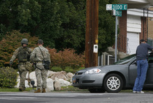 Hughes said Baker's wife, who is out of the country, has told police he's not a threat. Baker has no known military history.