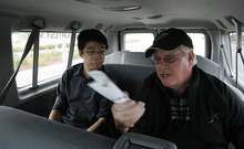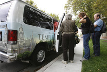 Jordan and his wife are more than happy to answer passengers' questions on their way to the airport. And, like tour guides, they describe the history of the LDS Church and Salt Lake City as they drive newly arrived travelers from the airport to Temple Square.