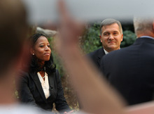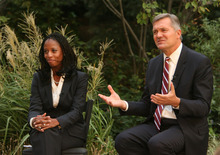 "There's two different directions we can take," Love said. "My opponent is supporting Barack Obama. Which [means] everything ends up with bigger spending, more borrowing and more debt. I've got the support of Mitt Romney [who will] make sure we champion the private sector so you can have a job."