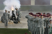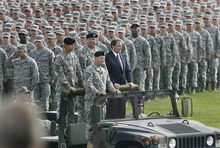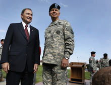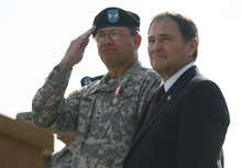The change-of-command ceremony made this year's Governor's Day a bigger affair than most, drawing more than 10,000 to Camp Williams in the southwest corner of the Salt Lake Valley. The day gives the governor a chance to review troops and lets the public see Guard aircraft and displays and enjoy a food court and climbing wall.