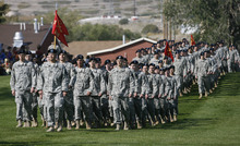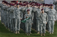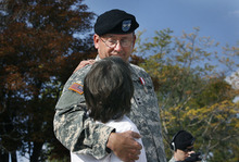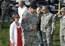 Donna Kunkel, of American Fork, wiped tears as she waited to give Tarbet, regarded as a soldier's soldier, a hug after the 90 minutes of speeches, ceremonies and parade of companies.