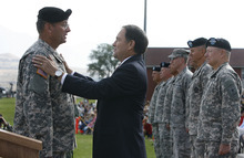 Camp Williams • Long after the governor, the top general in the National Guard and the Utah Guard's new leader had left the parade field, Maj. Gen. Brian Tarbet was sharing hugs and salutes with soldiers and their families.