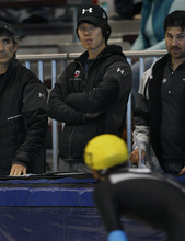 Only five skaters among the 12 who signed onto complaints about Chun and Yeo qualified for the World Cup team with their performances here, and Simon he allegedly had water and a notebook thrown at him, and was forced him to practice with a serious back injury was the only one to say that he would stay home if the accused coaches remain.