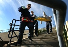 Orum learned during the practice Wednesday that it was quicker and easier to move patients in bags than on boards, as long as they didn't have any spinal problems.