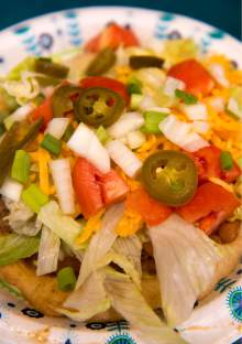 Most of his customers would never think of eating it so plain. They order the hot, golden discs slathered with honey and butter; or as a Navajo taco topped with meat and beans, lettuce, tomatoes and salsa.