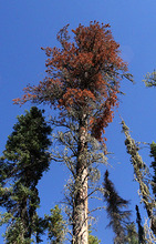 Bill Basnett, an 82-year-old barley farmer who has lived there as long as some of those trees, didn't know what had hit when the 20 pines lining his driveway started turning red. His son had transplanted them from the surrounding forest half a century ago, and his wife, who died soon after the 2006 infestation, was heartbroken.