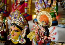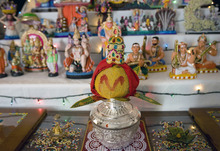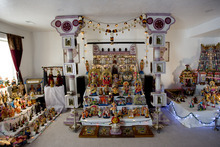 On the fifth day, members of Utah's 9,000-member Hindu community gather at the Sri Ganesha Temple in South Jordan to see colorfully clad families in a communal dance. In a corner niche is a similar shrine to Durga, festooned with dolls donated by members.