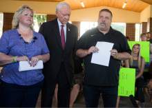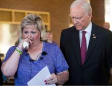 Laurie Holt, joined by U.S. Sen. Orrin Hatch, makes an appeal for the release of her son, J