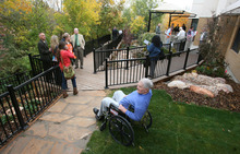 A path above Red Butte Creek, a man-made water feature and a gazebo have been completed on the south side of the home, which is on the campus of the Veterans Affairs George E. Wahlen Medical Center.