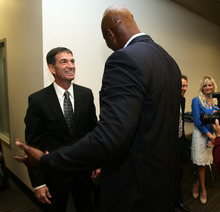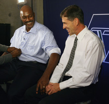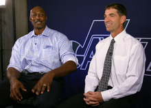 The Utah Sports Hall of Fame Foundation wanted to induct the legends together, after they went into the Naismith Memorial Basketball Hall of Fame a year apart. So the two of them teamed up one more time Tuesday night at EnergySolutions Arena, joining former BYU athletes Richard George, Chad Lewis and Doug Padilla in the annual ceremony.