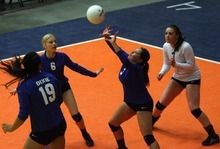 Two-time defending state champion and prohibitive favorite Morgan overcame a surprising challenge from Dixie 17-25, 25-20, 25-20, 22-25, 15-10 to again qualify for the semis. After Morgan lost just 26 total points in its first-round win over Park City, the Trojans took two of the first three sets from the Flyers in the quarterfinal.