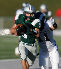 Olympus running back Coleman Meier runs the ball, with Highland's Adam Webber defending. Olympus vs. Highland, 4A high school football playoffs Friday October 26, 2012 at Olympus High School in Salt Lake City, Utah.