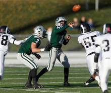 Olympus quarterback Corbin Anderson throws the ball. Olympus vs. Highland, 4A high school f