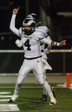 Highland's Austin Peterson celebrates Adam Webber's game-winning touchdown. Olympus vs. Hig