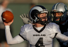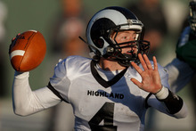 Highland quarterback Austin Peterson looks to pass. Olympus vs. Highland, 4A high school fo