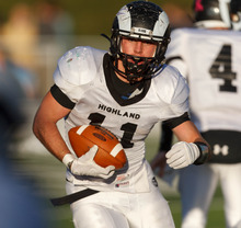 Highland's Skyler Lloyd runs the ball. Olympus vs. Highland, 4A high school football playof