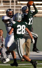 Olympus's Spencer Williams intercepts a pass intended for Highland's Sydney Lauti. Olympus