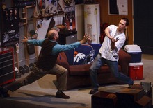 But as the two men in their 30s joke, cavil and obsess in their basement "man cave," they fumble toward some hard truths as their pregnant wives tend to business upstairs. Fears are unloaded and confronted. Their jabs and anecdotes seem funny, until their subcontext is revealed. Thinking back to their childhoods at the hands of their own fathers, they feel the tables turning even before their children are born.