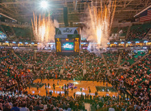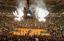 Fireworks kick off the season opener as the Utah Jazz host the Dallas Mavericks on Wednesday, Oct. 31, 2012 at EnergySolutions Arena in Salt Lake City.