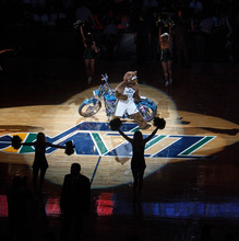 Bear, the mascot of the Utah Jazz, gets the crowd going during the Jazz season opener again