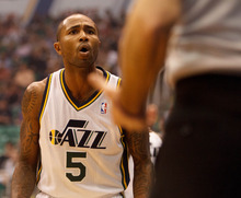 Utah guard Mo Williams reacts to his second foul in the first quarter during the Jazz season opener against Dallas Wednesday, Oct. 31, 2012 at EnergySolutions Arena in Salt Lake City.