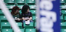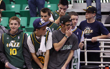 Jazz fans wait for players to come out of the locker room for shoot-around prior to the tip-off of opener against the Dallas Mavericks at EnergySolutions Arena in Salt Lake City on Wednesday, Oct. 31, 2012.