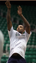 Jazz guard Mo Williams follows through on a shot as he warms up prior to the tip of the Jazz versus Mavericks game at EnergySolutions Arena in Salt Lake City, Utah Wednesday October 31, 2012.