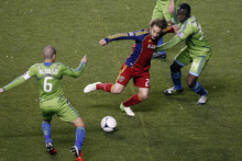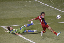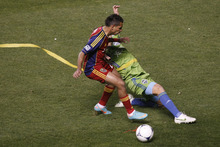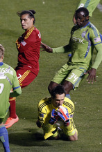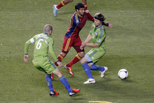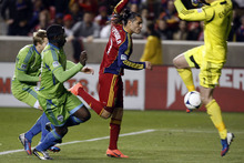 • Seattle's Mario Martinez gets a shot past Nick Rimando in the 81st minute.