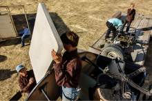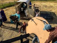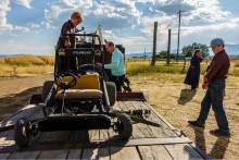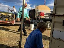 The belongings Owen was picking up were being stored in and around an old horse trailer. Owen, Ammon, Kathrynn and some FLDS boys loaded an old go-kart, a park bench, school desks, chairs, an art table and gratings that looked like they had once been part of livestock fencing onto the beds of the truck and flatbed trailer.