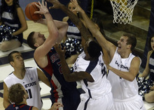The Aggies made a late run, coming within three points with five minutes left as Danny Berger drilled a 3-pointer. But the surge fizzled as the Gaels made their free throws and the Aggies couldn't make their own. Utah State went 15 for 24 from the line, and missed the front end of one-and-one fouls four times in the second half.