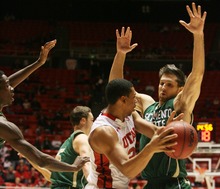 Needing a stop, Utah forced Sacramento State's John Dickson into a long 3-pointer, which missed.