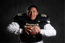 But he has a chance to play with his younger brother, in high school and beyond. Noah Sewell is a sophomore but already holds offers from Alabama, Utah, Arizona State, Hawaii, Utah State and Nevada. Noah will be playing quarterback this season for the Thunder and when the ball is in his hands, he'll be well protected on his right.