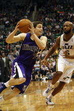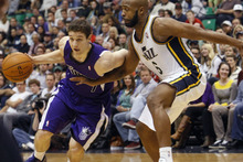 Sacramento Kings point guard Jimmer Fredette (7) and Utah Jazz point guard Jamaal Tinsley