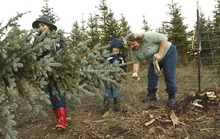 The Gudgell clan, too, makes tree cutting a family affair. Brent and Nan Gudgell's children, Liz Sullenger and David Gudgell, are married with kids of their own. The three families 13 people in all met up at Robinson's Tree Farm in search of three perfect Christmas trees.