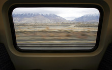 Utah county blurs by as the new FrontRunner train line from Salt Lake City to Provo affords nice views of the mountains on Friday, November 30, 2012, as UTA gets ready to open for regular service on Monday, December 10, 2012. The public is also welcome to try out the line as part of their "Food for your fare" on Saturday, December 8, 2012, from 10 a.m to 10 p.m by providing a non-perishable food item to be donated as "fare" to benefit the Utah Food Bank and the Community Action Services.