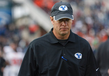 But he rarely seemed seems completely at ease in his role as BYU's lead dog. That, too, is subjective. When Mendenhall first arrived, as Crowton's defensive coordinator, he acted more like a football coach. He was animated and wild-eyed, calling for his players to embrace his defensive philosophy of "complete disruption."