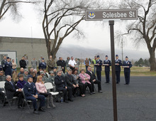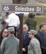 Solesbee Street, on a rise at the south end of Hill Air Force Base, overlooks Layton to the south and Clearfield to the west, a community where the airman and his wife, Lilia Solesbee, lived.