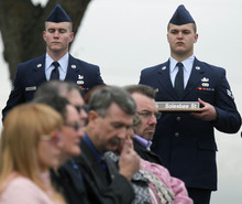 Solesbee's widow, parents and sister sat in the front row and more than 20 members of his tight-knit flight the 775th Civil Engineer Squadron's Explosive Ordnance Disposal squad stood in their dress blues during the somber ceremony.