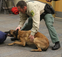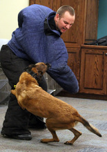 The physical nature of the job has taken its toll on the 6-year-old Belgian Malinois, said Clyde's handler, Deputy Brandon Roundy.