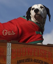 Assistant driver Dennis Knepp and Gus the dalmation sit atop the coach as the Budweiser Cly