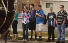Students from Walquist Junior High School watch the Budweiser Clydesdale team as it heads to the George E. Wahlen Veterans Home on Friday in Ogden. The Utah Department of Veterans Affairs held a Pearl Harbor remembrance ceremony at the home.