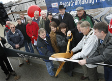 Despite a snowstorm, about 150 people fueled with contractor-supplied hot chocolate, commemorative knit caps and hand-warmers took up the state's offer to run part of the new highway in a 5K "Polar Bear Fun Run" before it opened to traffic.
