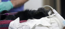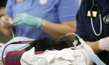 Eli, a black howler monkey, is under anesthesia and prepped for his sinus operation at L.S. Skaggs Animal Health Center at Hogle Zoo Tuesday, Dec. 18. Ear, nose and throat specialist, Dr. Richard Orlandi from the University of Utah School of Medicine, performed the endoscopic procedure. Several weeks ago, Eli developed thick white nasal discharge that didn't respond to treatment.